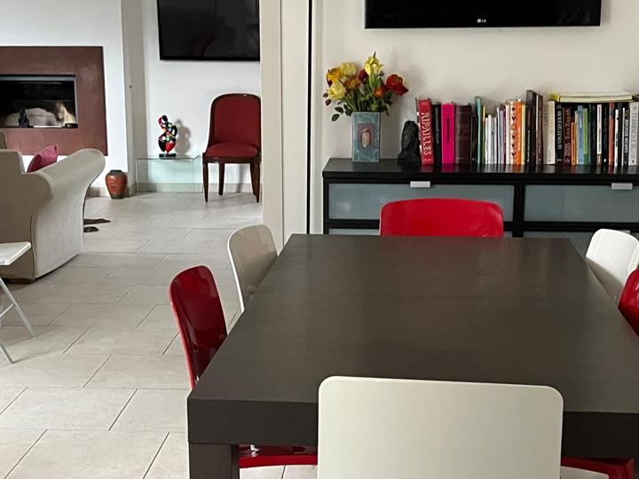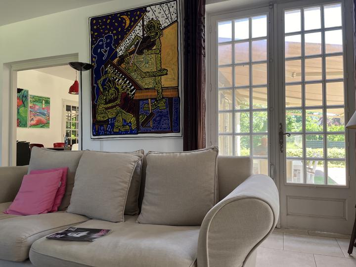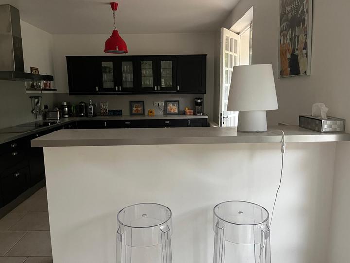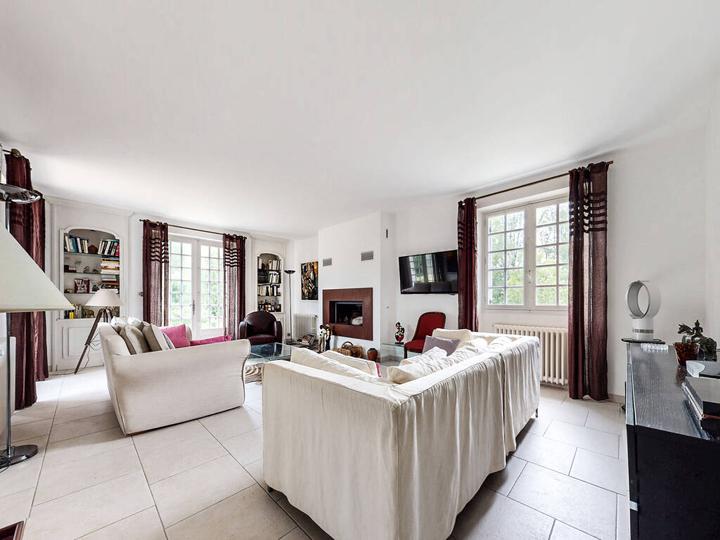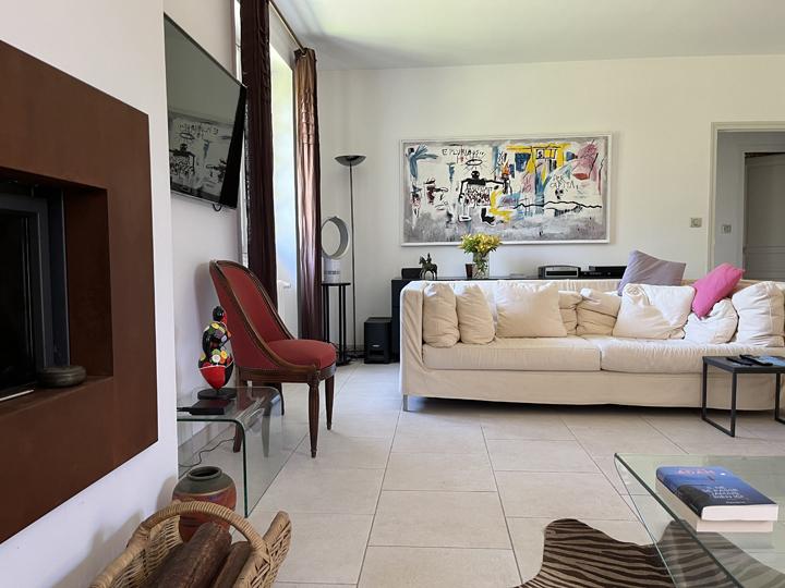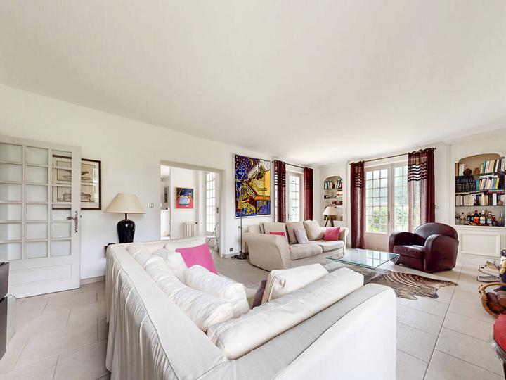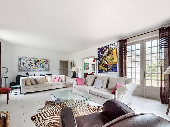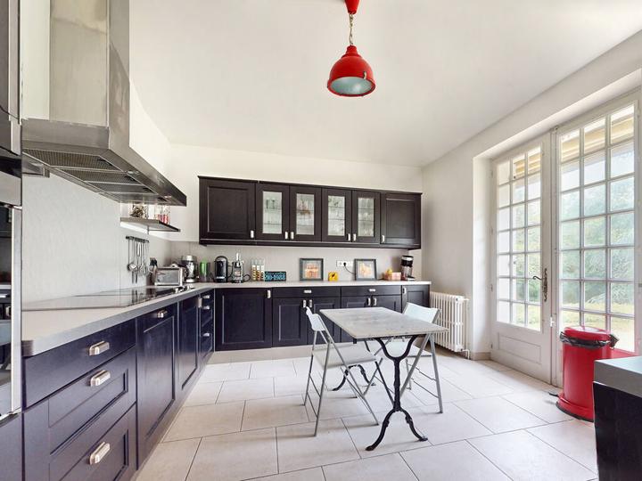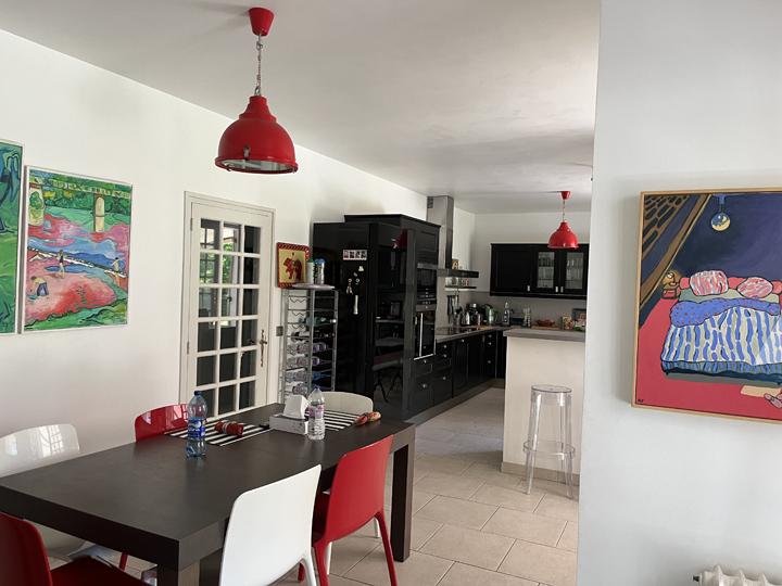 Lumineux espace de vie (en "L") : Salon (hauteur sous plafond : 2,62 m) avec cheminée insert : 30,7 m² Cuisine semi-ouverte, aménagée et équipée + Salle à manger : 34,1 m² |