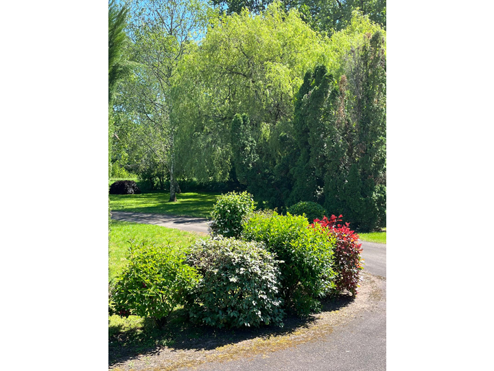 Terrain clos, arboré et entretenu avec grand jardin d'agrément (cèdre du Liban, saule pleureur, bouleaux, peupliers, cyprès, cerisiers, etc.) et parcelle idéale pour l'installation d'une piscine avec pool house ou la création d'un potager/verger |